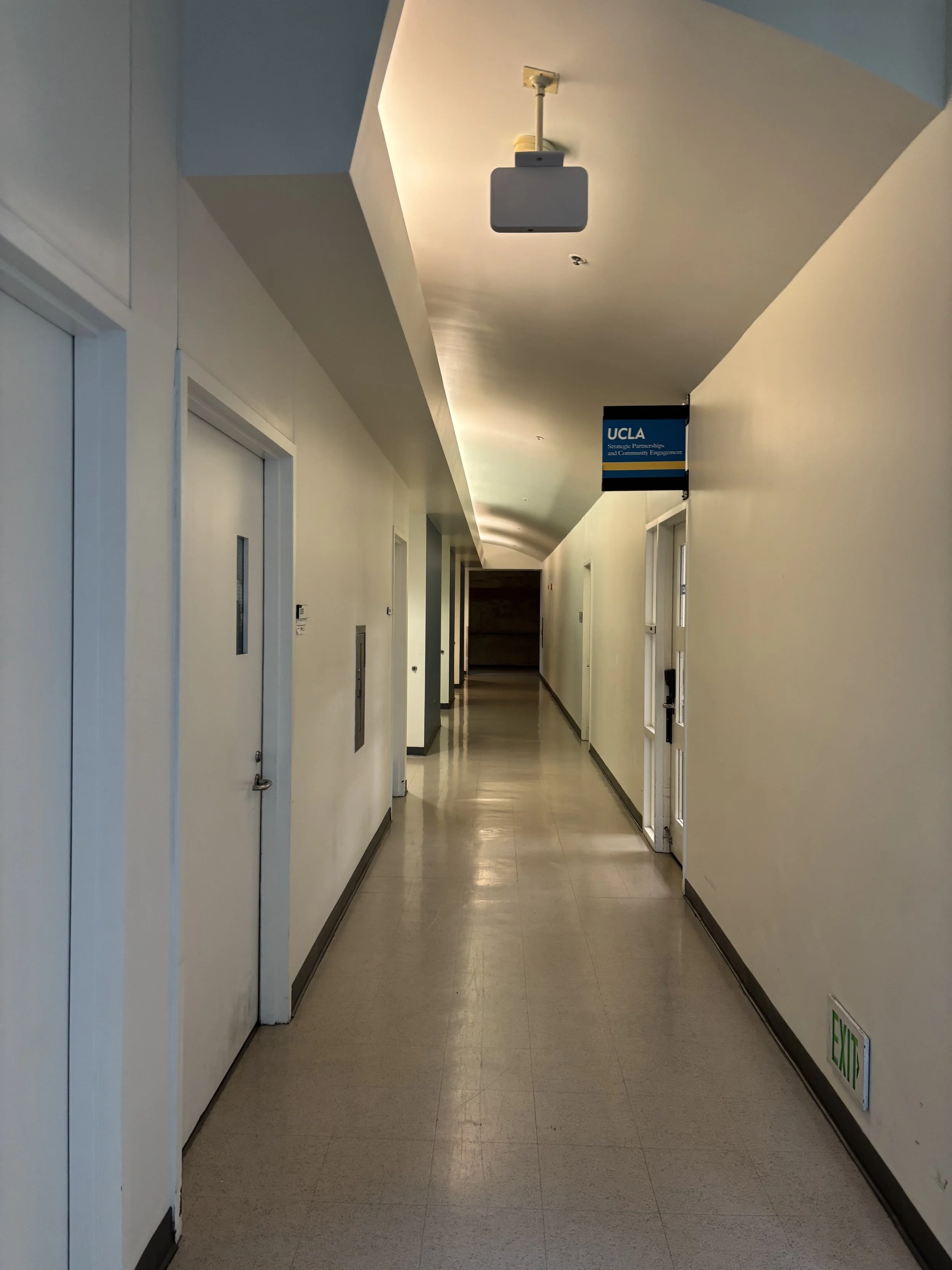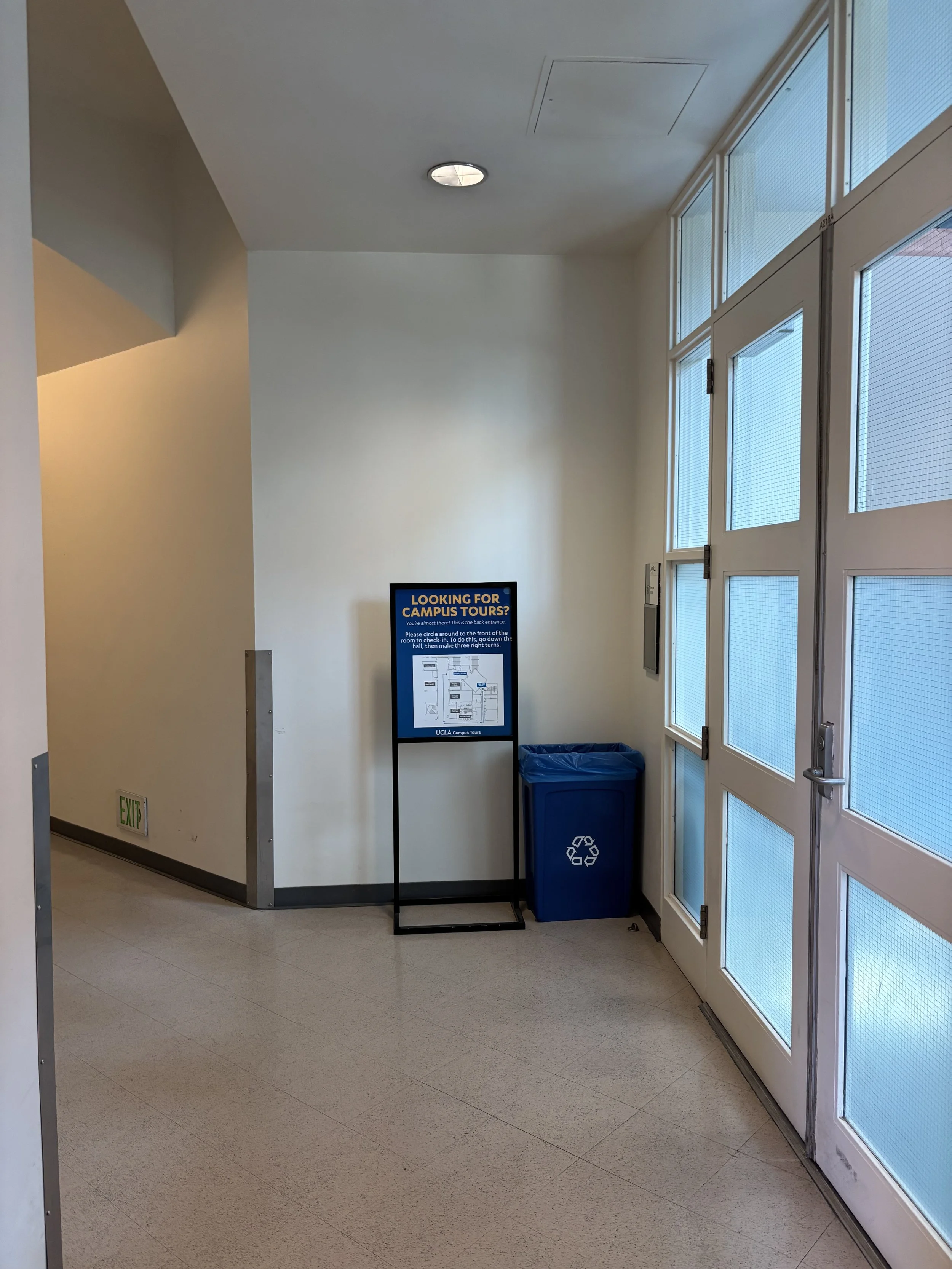 Step 5: Inside, you’ll see UCLA directional signage posted on a stand. Continue straight ahead.