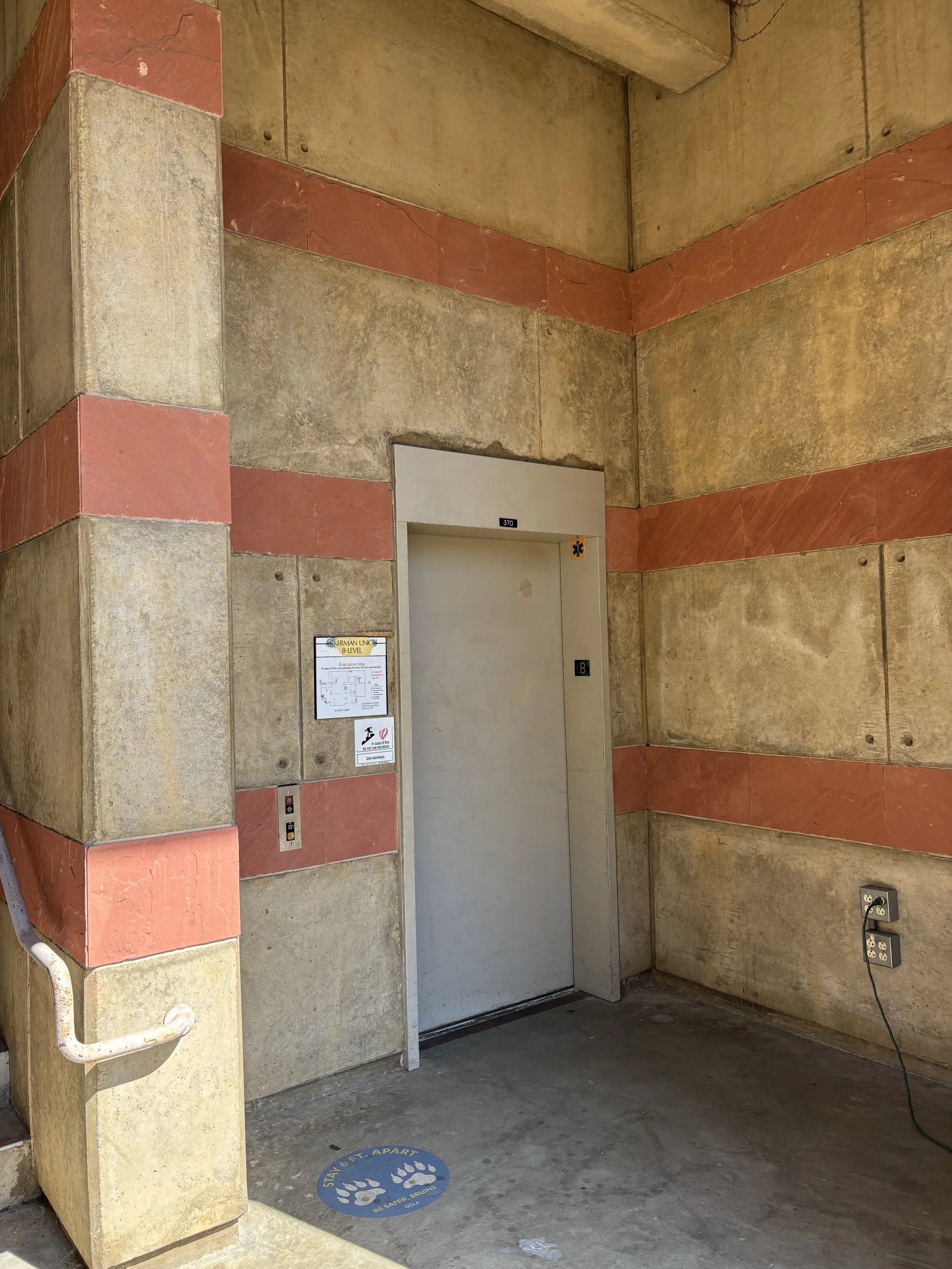 Elevator from B-level to A-level (NW exterior side) — when on A-level you end up near the Bruin Viewpoint Room