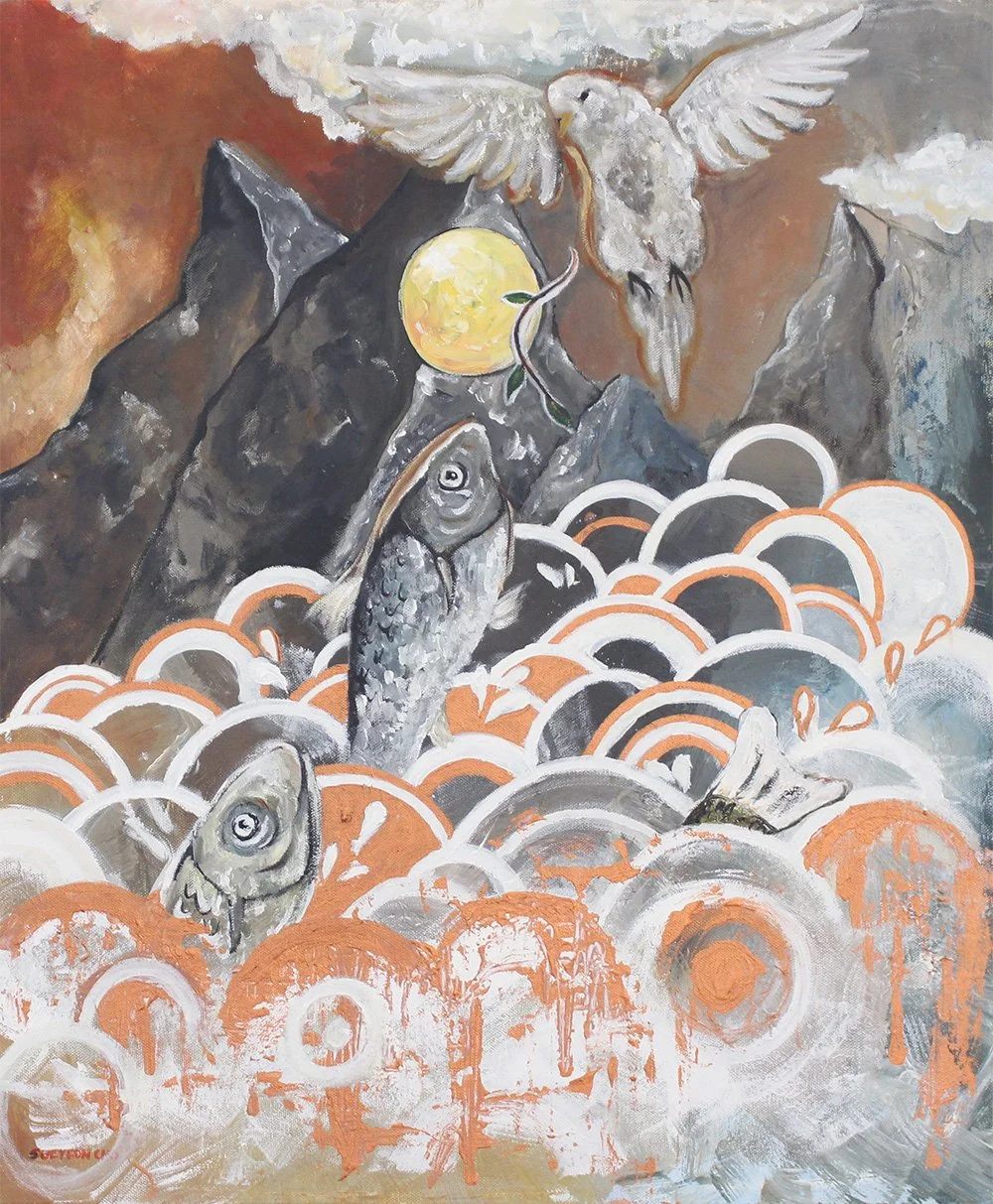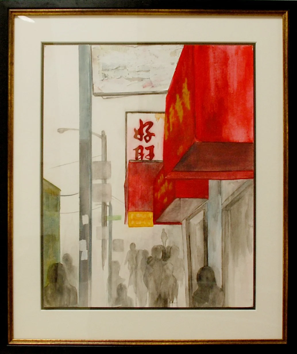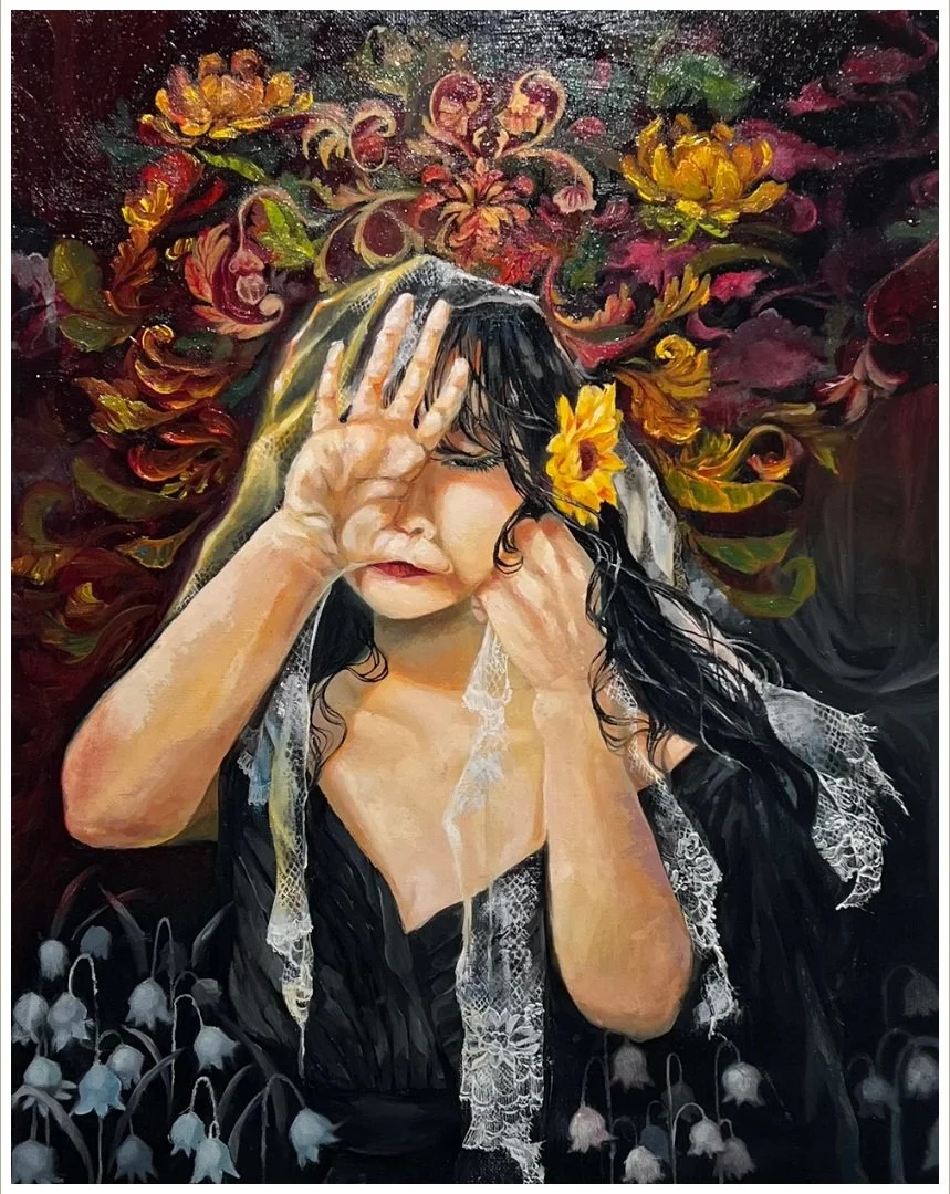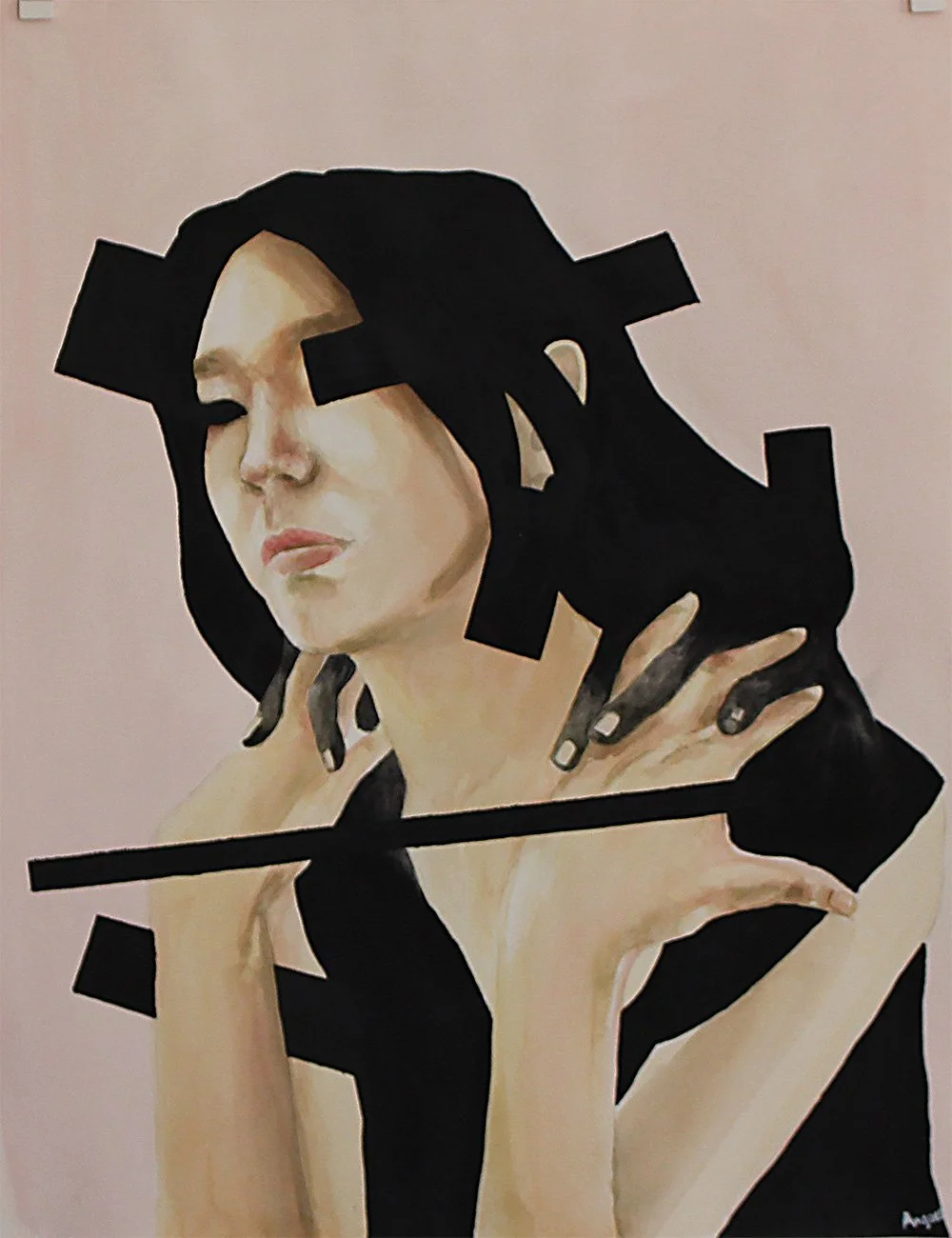 Through this piece, I aimed to convey the sense of liberation we gain as we grow up. Whenever I think of a merry-go-round, I am struck by a sense of nostalgia because it was my favorite ride as a kid, so I used warm, gentle colors to create a dreamy atmosphere. The peach-colored clouds progress into a cool blue to illustrate the uncertainty and ambiguity of adulthood in comparison to our childhood days. In the flow of the painting, the horses on the right side are embellished with heavy ink outlines and excessive mark-making, as well as accessories and carousel poles. As the horses gallop across the background, the lines become sparser and their accessories fade away: they break free from the carousel’s confines and run on their own path without reins or saddles. Although the future is undefined, we must move forward with resilience and seek the moments of sunlight streaming through storm clouds.