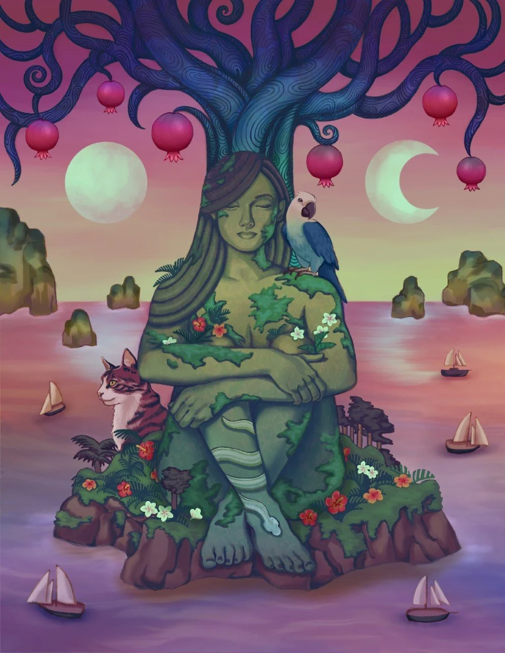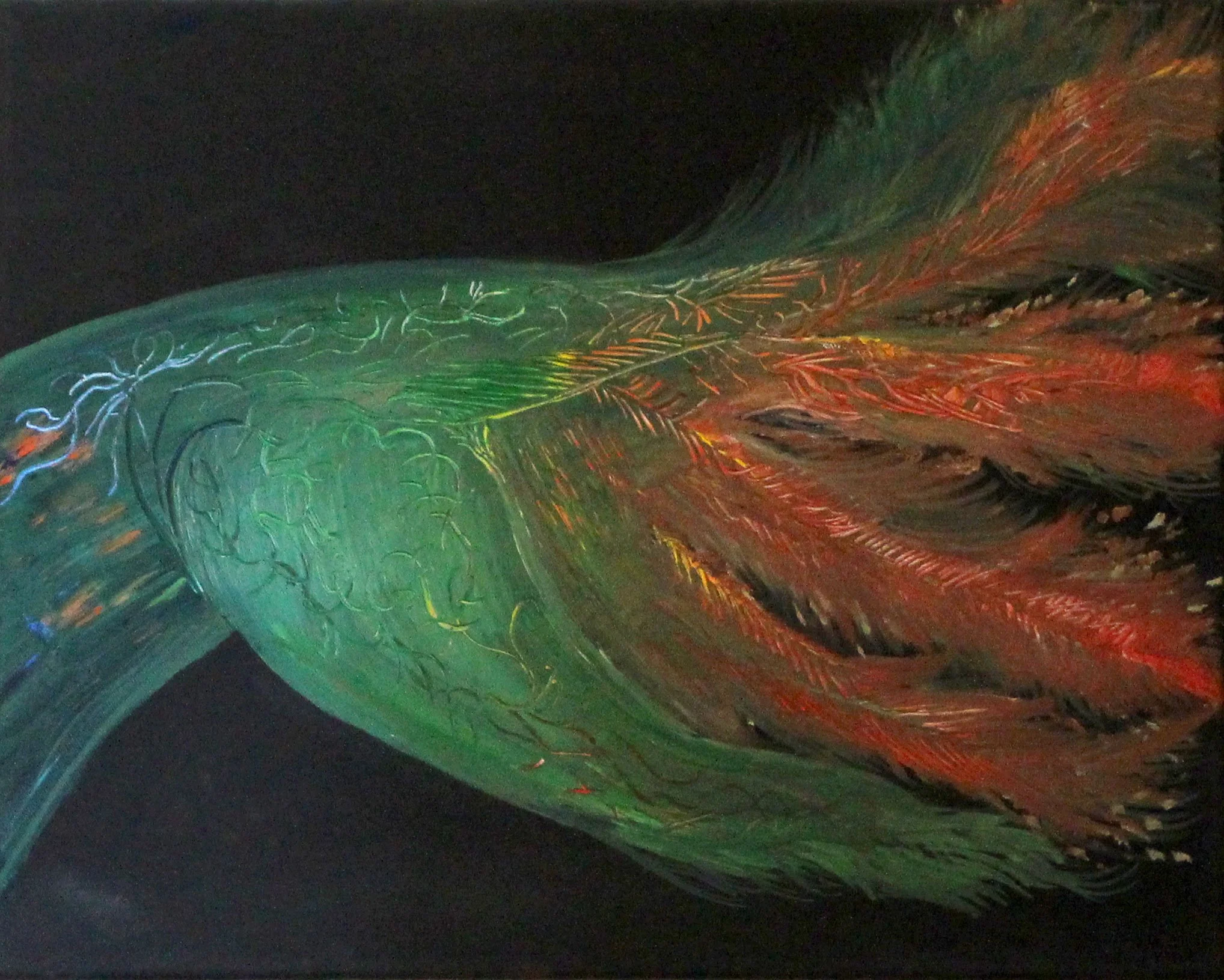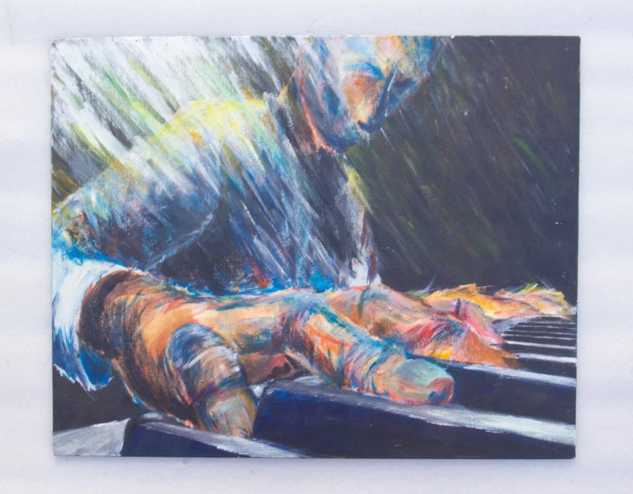 Through this piece, I aimed to convey the sense of liberation we gain as we grow up. Whenever I think of a merry-go-round, I am struck by a sense of nostalgia because it was my favorite ride as a kid, so I used warm, gentle colors to create a dreamy atmosphere. The peach-colored clouds progress into a cool blue to illustrate the uncertainty and ambiguity of adulthood in comparison to our childhood days. In the flow of the painting, the horses on the right side are embellished with heavy ink outlines and excessive mark-making, as well as accessories and carousel poles. As the horses gallop across the background, the lines become sparser and their accessories fade away: they break free from the carousel’s confines and run on their own path without reins or saddles. Although the future is undefined, we must move forward with resilience and seek the moments of sunlight streaming through storm clouds.