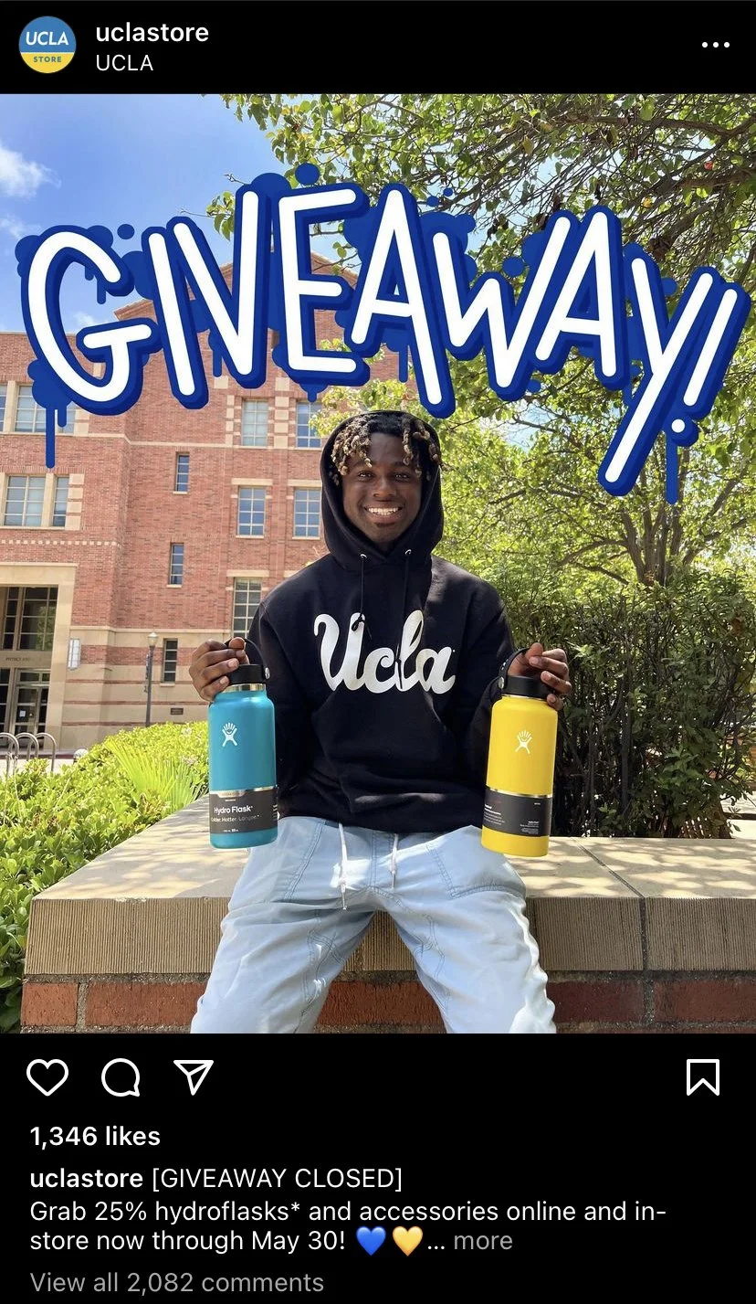 ASUCLA’s hard work went on to place 8th in Instagram follower counts at 19,700, reigning in 7th place for an overall 5.2% engagement rate. The UCLA Store Instagram came in at 11th place for both its follower count of 16,500 and an engagement rate of 3.4%.