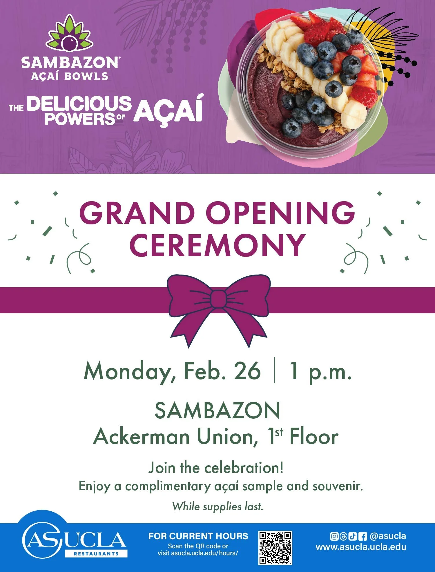 Ribbon cutting: Join ASUCLA in welcoming SAMBAZON açaí to Ackerman Union