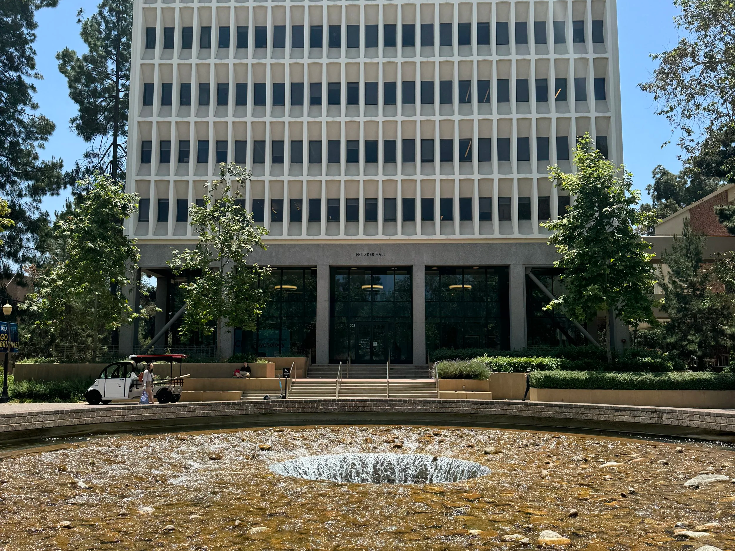 Ever looked down at the Inverted Fountain from Pritzker Hall? It bears an unfortunate resemblance to a certain bathroom apparatus. This is because the architect who designed the Inverted Fountain was initially expelled from UCLA for poor grades before finishing his degree at USC. When the Inverted Fountain design contest was announced, he entered and won and in retaliation to UCLA for kicking him out, designed the fountain to look like a toilet.