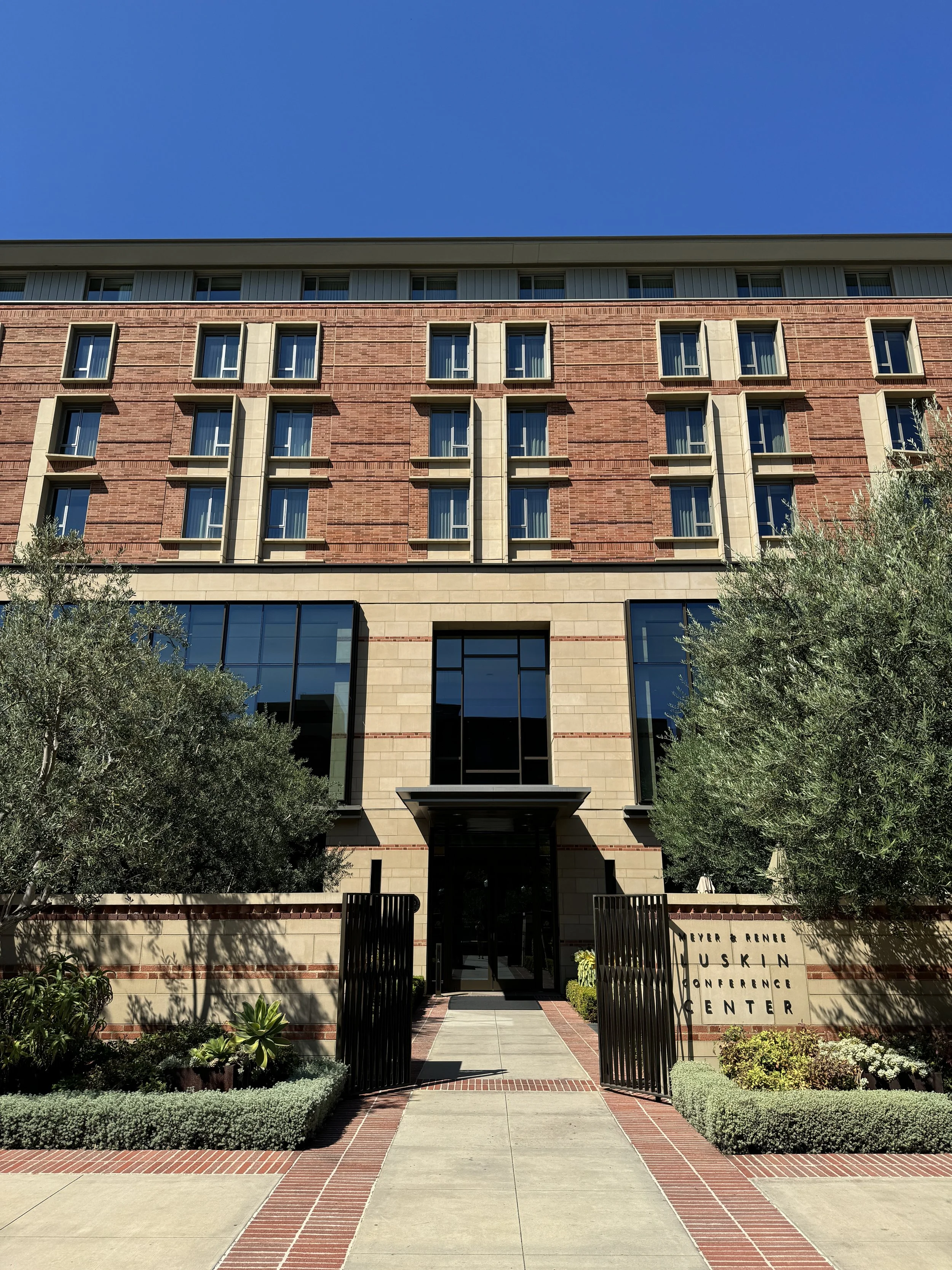 The UCLA hotel, officially named the UCLA Meyer and Renee Luskin Conference Center, is both a space for holding conferences and other events, as well as a hotel for Bruin families visiting for popular UCLA events, such as student orientation, graduation and more. Often simply called “Luskin” or the “Luskin Center,” the hotel is one of the closest hotels near UCLA, open and available to all guests, affiliated or non-affiliated with UCLA. To learn more about the Luskin Center, visit its website directly by clicking the button below.