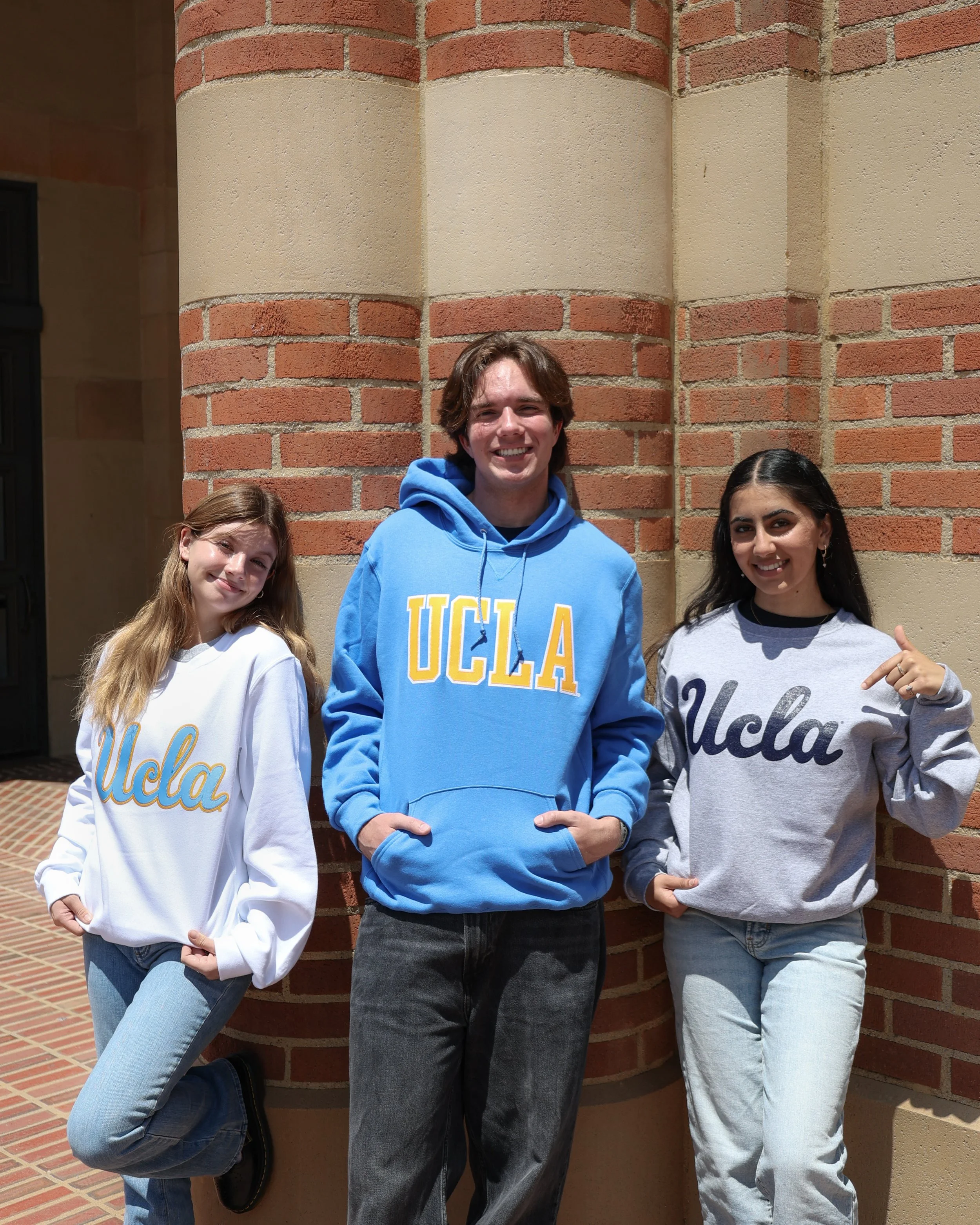 To purchase an officially licensed University of California Los Angeles sweatshirt, visit the official UCLA Store locations across campus, or at the largest location in Ackerman Union, B Level. To browse the sweatshirts and other apparel via the UCLA Store website, click the link below.